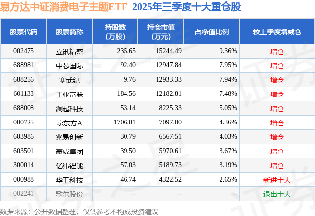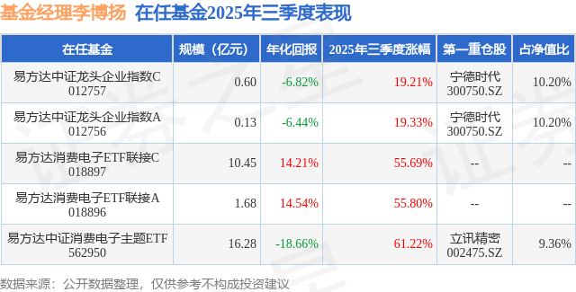 本站音书,日前易方达中证消耗电子主题ETF基金公布三季报,2025年三季度最新范围16.28亿元,季度净值涨幅为61.22%。
